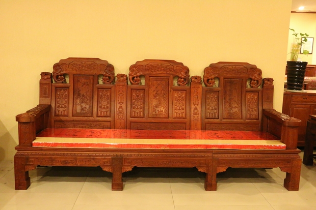 大家好,今天我們福林堂紅木要為大家介紹的這一款沙發(fā),其名字內容較為通俗意賅——“豪華如意”。“豪華”之意:一是代表其所選用材質——緬花的珍貴,二是因為那浮華鐫秀裝點紋飾的富麗;而如意則指的是這些紋飾在其內部所承載的深厚寓意,這其中包含有喻以吉祥富貴吸財之意的大象紋、代表祥和福瑞之意的麒麟紋、還有寓帶五福象征不老不衰的梅花紋、以及擁有幸福之意的蝙蝠紋、銅錢、魚紋、銅鈴紋飾等等,它們以物喻情,這也是紅木家具不同于多數(shù)一般類普通家具的重要標志所在,可以說,它們已經不單單是一件生活中的家具品那么簡單,這其中也包含了所使用主人內在的精神世界追求和意志情感寄托之需要。